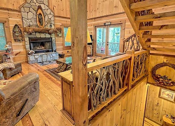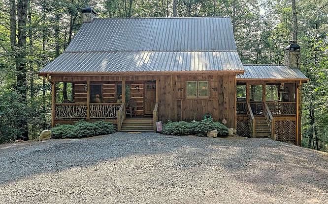 Cozy cabin in the woods with seasonal views, located in The Heart of The Aska Adventure Area! This 3 bedroom 3 bath cabin is what you have been looking for! Beautiful mixture of wood siding, real log, exposed beams. Kitchen offers granite countertops and stainless steel appliances. Enjoy any of the 3 fireplaces, cozy night in, outside on the screened porch or downstairs while playing games or enjoying the hot tub. Each level offers a bedroom and full bathroom. Close to waterfalls, hiking and biking trails, tubing down the toccoa river and fishing. Comes fully furnished Excellent established rental cabin! Call now!