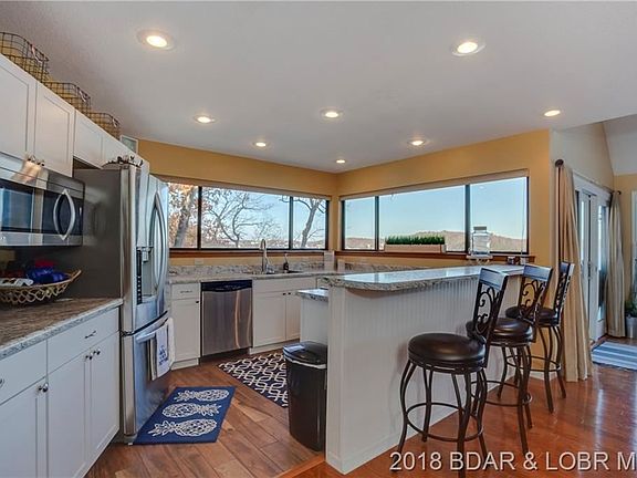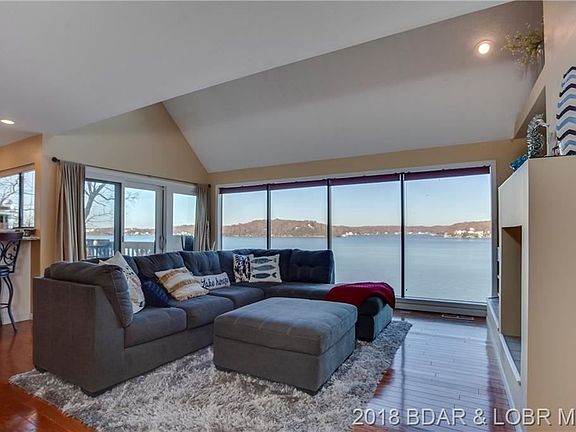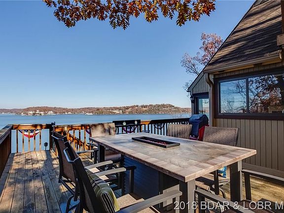 Spectacular 180 degree million dollar lake views! This property is uniquely positioned with a point shaped waterfront lot in a quiet neighborhood of nice homes. Home sets on a cul-de-sac like paved street adding to the desirability and very little traffic. No homes have been built on the adjoining lots, adding to the privacy. Home features 3 bedrooms, 3 updated bathrooms, updated kitchen, newer appliances, new water softener, wifi thermostat and camera, private deck off each bedroom, hardwood floors, utility room, and a large conditioned storage area with outdoor access for all the lake toys! The lot pies out towards the water creating a large dock envelope. Concrete dock with 8 arm 8,000# lift 12x32 slip is included. Furniture is available for additional money.