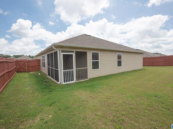 Beautiful move in ready 3 bedroom 2 bath just a couple of miles from Veterans Park in Alabaster. Almost new home with Screened In Porch and Fenced in Yard. One level living with an open floor plan, light colored paint, lots of windows, and beautiful LVP flooring. The kitchen features a large breakfast bar, lots of cabinets, and granite counter tops. Dining area right off the kitchen with plenty of space for a 6 person table. Both of the bathrooms in the home are handicap accessible and have tiled showers. Split bedroom floor plan with two bedrooms up front and master in the backEnjoy these warm summer nights out back.