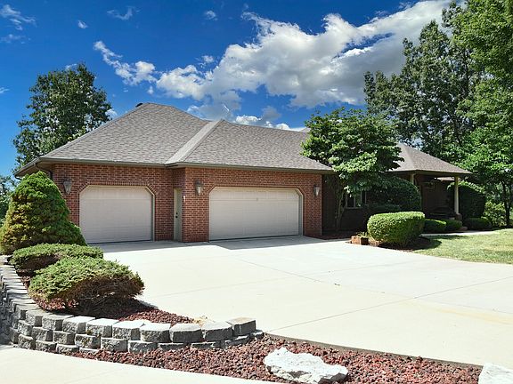 191 Deer Lane is a slice of Ozarks heaven. Situated on 16.6 park-like acres, this all brick, walkout basement home has a lot of special features which make it unique. A large covered patio marks entry to the home, the entryway leading to an open living area. This home features Andersen windows throughout and hardwood flooring in all areas of both floors, with the exception of the 3.5 baths, which are tiled. The kitchen is a chef's dream, with granite counters, two ovens and a 5 burner gas cook top. Cabinets are ample and top quality hickory construction. A skylight was recently added, bringing more light to the area. The primary bedroom is nice sized with a dual vanity bath, working jetted tub, and shower that will soon have a new glass door. Entry to the back deck is also accessible from the main bedroom. Other great features upstairs include: a second bedroom, a large laundry room, and a carpeted, glass enclosed sunroom. This sunroom is special, with air conditioning and magnificent views of the landscaped property. A door leads to a recently re-done, covered back deck with more breathtaking views of the lush grounds. The current owners installed a stairlift 2 yrs ago, this would be a great feature for a family member living downstairs (in-law quarters), or could easily be removed. Downstairs you will find a second, large living area with a gas fireplace. The third bedroom is large and has access to the lower level grounds along with a dual vanity full bath. Other downstairs features include: a wet bar, safe room,, and a huge, heated ,37x32 garage/john deere room with double door entry. There is a second stairwell leading from this area to the upstairs. The 3 car garage upstairs features a new epoxy floor, automated whole house Generac generator, and new Rainbird sprinkler system that can be controlled via app.! The whole house is monitored by upgraded fire/co2 detectors. Call today for your showing of this unique estate showcasing the beautiful Ozarks!