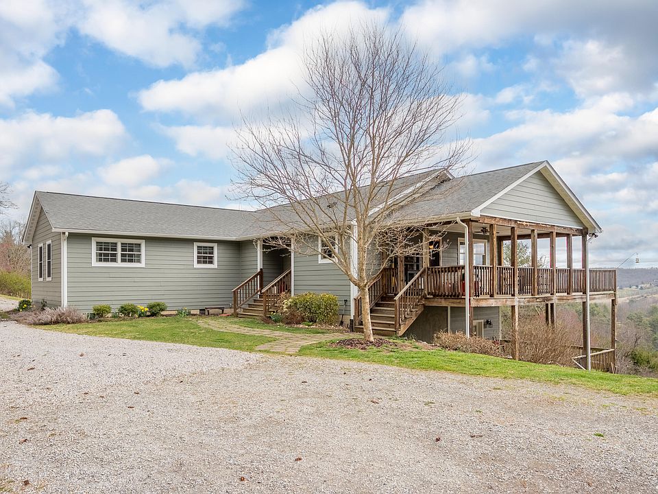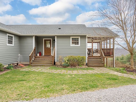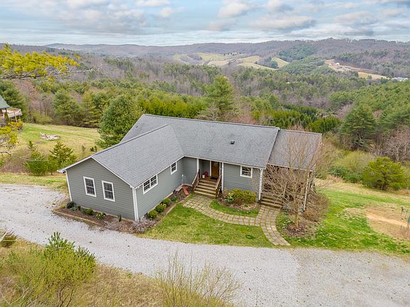 Lovely 4 bedroom, 3 bath home in Floyd County on 3.68 acres with gorgeous south-facing, long-range views! This solid &comfortable home has an open floor plan, hardwood floors throughout w/ceramic tile in the bathrooms, stainless steel appliances, soft-close cabinets/drawers in the kitchen, vented gas log fireplace in the living room, & long range views from most rooms in the house. The Primary suite on the main level has an ensuite bath with tile shower, large walk-through closet, & sliding glass doors out to the deck. Two-zone propane forced air heat keeps this well-insulated home toasty in the winter. Laundry room is on main level. Upper & lower decks run the full length of the southern side of the home &wrap around to the covered porches at one end. Poured concrete foundation, Hardie Hardie board siding painted in 2021, architectural shingle roof, 30 gallon per minute well, water filtration system, state maintained road in 35mph zone. Fiber Internet already connected! 15 min to downtown Floyd, 30 min to Blacksburg.