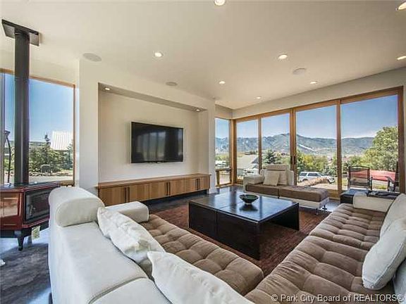 Fantastic Mountain Views from this newly constructed modern designed home. Great light and views from the 4 quad-slider door systems. Wolf range, double ovens, and Sub-Zero fridge top off the kitchen and open floor plan. Radiant heat throughout with stained concrete floors. Main level includes the master, laundry and two additional bedrooms. Oversized 4 car garage includes radiant heat as well. A must see home from this award winning Architect.