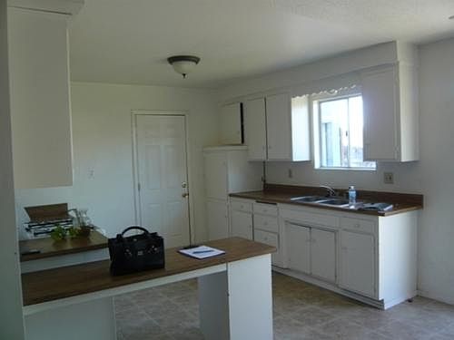 Single story with large living room with fireplace. Dining area. Open kitchen with gas range. Hall bath has a tub. Master bath has a shower. Huge back yard with fruit trees! 2 car attached garage. Laundry hookup in the garage. 1 year lease. No pets. No section 8. No smoking.