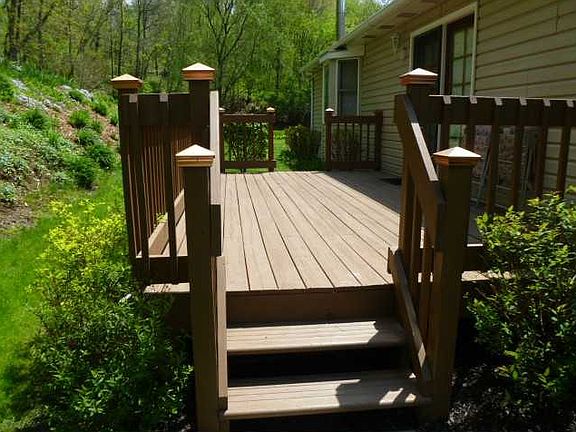 A beautiful place to call home with newly installed central air conditioning! This home boasts a large landscaped corner lot, TONS of storage, a large fully finished lower level with a family room, bedroom & full bath plus laundry & an extra storage room, two spacious outdoor sitting areas (front porch & rear patio), oak cabinets, a beautiful bay window in the breakfast nook area plus much more. Great location & neighborhood!