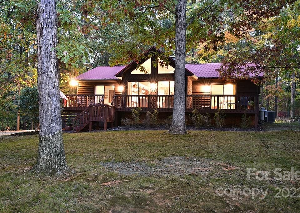 Your picture perfect, furnished mountain retreat located in beautiful, gated Woodrun at Lake Tillery,NC, in the Uwharrie Mt. region. A rare chance to own 1.57AC across strt from water w/some gorgeous water views on perfectly sloped land. This rustic home features a gorgeous real stone see thru fireplace between spacious family room w/vaulted, pine ceiling & dining room overlooking back deck,with relaxing backyard & fire pit. 2 Primary Bdrms overlook front deck w/waterviews. New laminate wood flooring in family room & kitchen w/new appliances & quartz countertops. Detached garage w/workshop. A short distance from this house to the Woodrun Clubhouse, w/waterside pool & boat slip area based on availability. Member's only private boat ramp into Lake Tillery. Playground, walking trails, sports courts for members. Sellers will need a closing date of at least Jan. 1, 2023 or shortly thereafter.