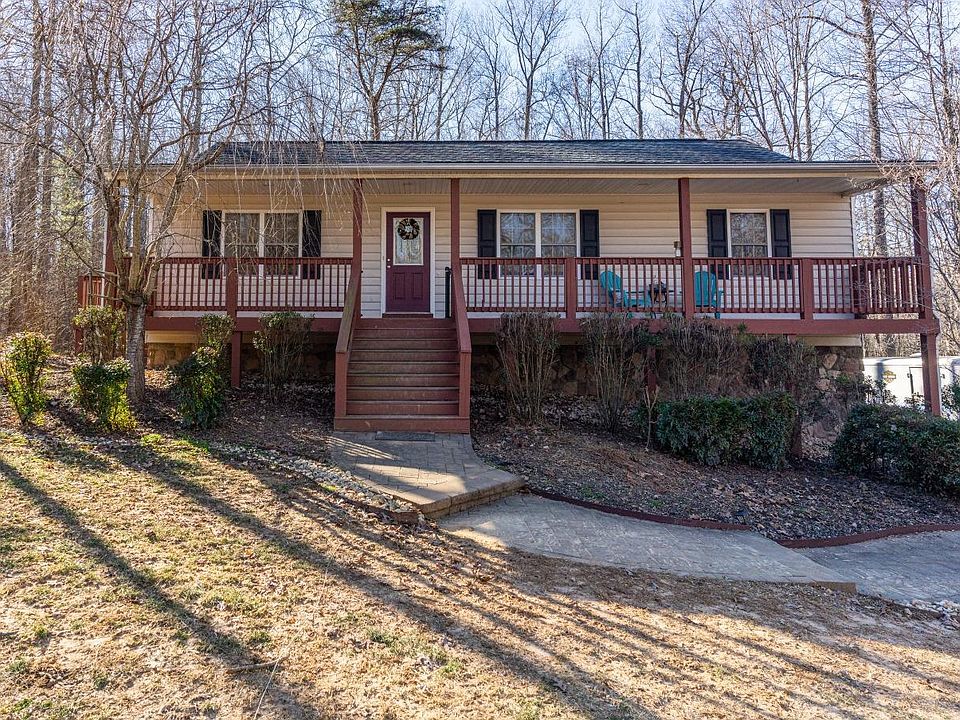 Beautiful ranch home on 1.6 acre lot. This home offers an open floor plan with vaulted ceiling in the large living room. Throughout the home you have hardwood & ceramic tile flooring. All bedrooms are on the same level with a master suite that has a large bathroom, walk in closet, and a private deck walk out. Downstairs is a full family room with a half bath that is the perfect space for entertainment. Attached to this space is a 2 car garage .The long front porch has plenty of room for your rocking chairs and morning coffee or enjoy grilling on the side deck. Near the creek you have a great spot for a firepit set up.