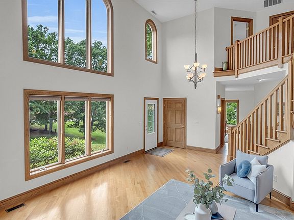 This open concept Contemporary Colonial in the coveted Fox Run neighborhood is an entertainer's dream! Whether hosting a poolside BBQ, formal dinner party, or enjoying a cozy evening by the fireplace, this stunning property offers a luxurious haven where you'll enjoy not just a home, but a lifestyle. Step inside and be captivated by the soaring ceilings & oversized windows flooding the interior w/natural light. The spacious kitchen is a chef's dream, featuring an expansive center island, plentiful cabinetry, & enviable pantry. It seamlessly flows into the striking stone fireplaced family room w/custom built ins. Sip your morning coffee on the sweeping IPE deck overlooking the private backyard oasis. The luxurious primary suite is a true retreat boasting a spa-inspired bath & sizeable walk/in closet. 3 additional bedrooms, 2 bathrooms and convenient home office complete the 2nd level. A finished walk/out lower level w/full bath offers additional versatile living spaces as needs change.