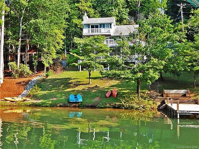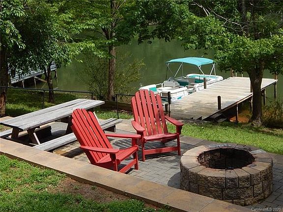 Great vacation rental property available on a wide cove on beautiful Lake Lure. This well maintained 4 bedroom, 3.5 bath home is set up to entertain! From the open concept main living area to the family/rec room on the lower level, all three floors have beautiful stone gas log fireplaces, including one in one of the two master suites. The bunk room downstairs houses 6 bunk beds - perfect for slumber parties! There is plenty of decking as well as a screened porch overlooking the lake. Take the gently sloping walk down to the large dock and fire pit area to enjoy all the lake activities. Offered turnkey. Conveniently located just minutes from multiple restaurants, a grocery store and downtown Lake Lure. Rated 5-stars with a solid rental history and excellent income potential! By appointment only.