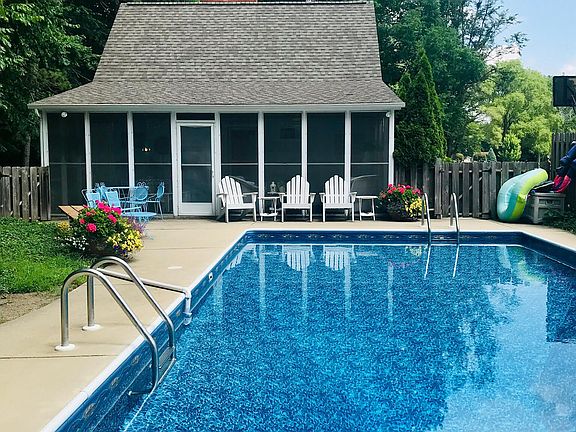 Comfort, happiness, and easy entertaining await with this 2,650 SqFt home located on the 9th fairway of the Caro Golf Club. One of only 8 homes on the private drive, this impressive family home sits on two lots providing privacy and ample play-space. The 1st floor includes formal living and dining spaces, laundry, and family room with fireplace, as well as a library or study which could be easily converted into a master bedroom. Three bedrooms and two bathrooms are all located on the 2nd floor, perfect for growing families. The heart of this home is in the open kitchen which features custom maple cabinets, granite countertops, a wet bar, and dining area. The garden level basement features a finished recreation room and provides approx. 416 SqFt of storage. The beautifully landscaped in-ground pool, screened-in porch, and expansive stamped concrete patio with hot tub provides endless opportunities for summer fun and entertainment. Conveniently located at the edge of the city limits.