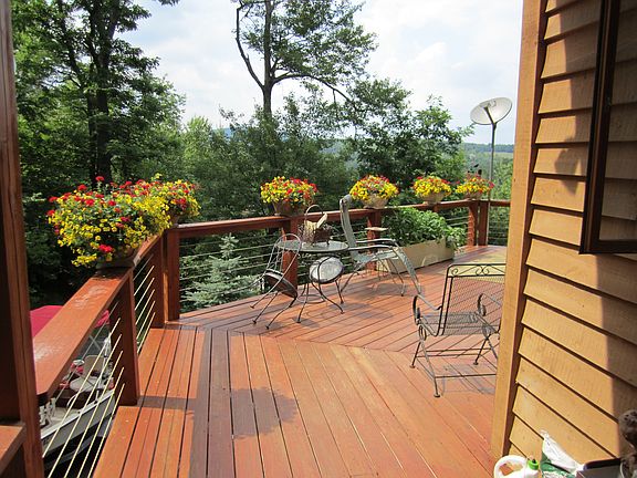 Custom built A-frame cabin with complete wrap around deck covered on two sides. Three bedroom suits. Great room with wood burning and gas log fireplace. Chimney reaches to cathedral ceiling three stories high. Upper level suite has large loft area. Over sized one car finished and heated garage on lowest level. Upgrades this year include granite counter tops, new cabinets, refinished hardwood floors, new driveway (asphalt), fresh stain, and new double seal windows where needed, fresh landscaping. No AC... none needed at this altitude. One mile off Blue Ridge Parkway and one mile from down town Blowing Rock.