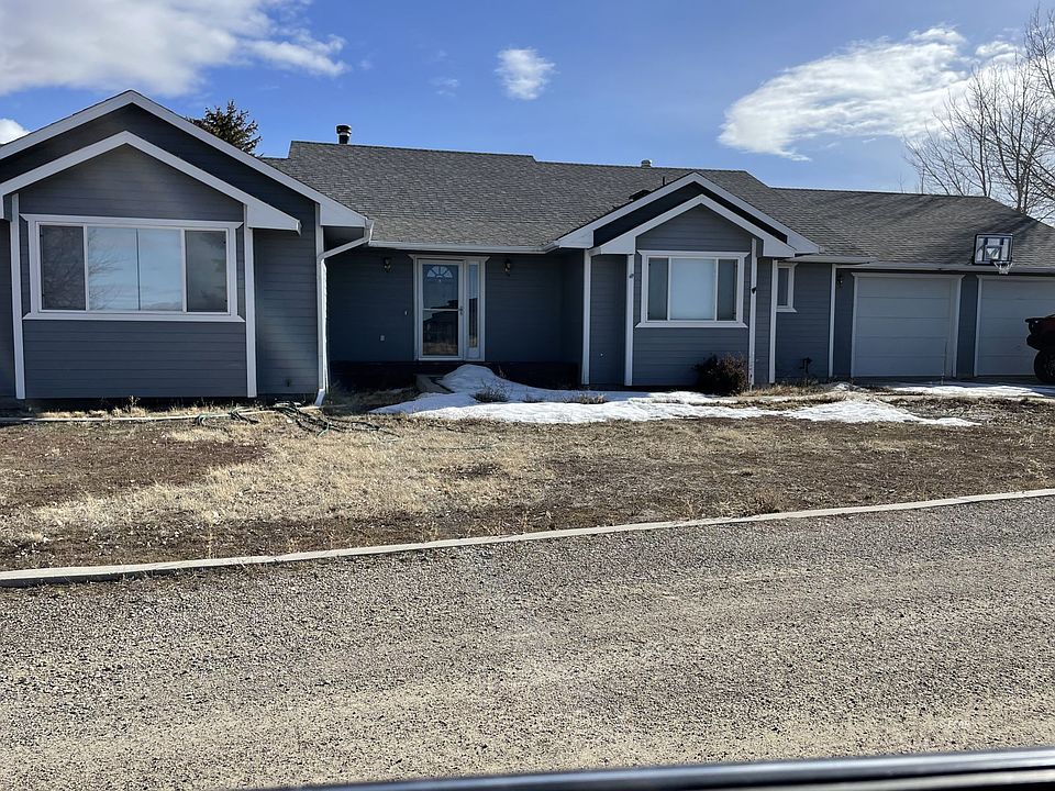 This 4 bedroom 2 and half bath home sits on over 4 acres with the most amazing views! And it's all one level. Laminate wood flooring throughout the home. The kitchen has plenty of counter space and stainless steel appliances. The large living room area has a pellet stove to keep you warm on cold winter nights. Out back there is a detached shop. The property is fenced and has mature landscaping.