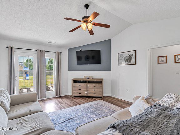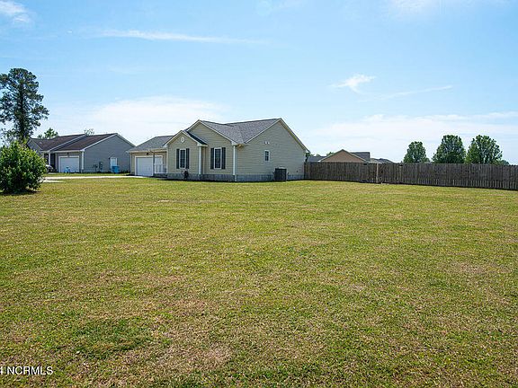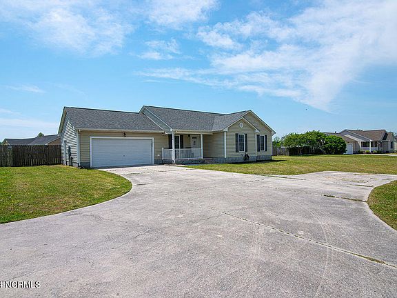Welcome to this charming 3-bedroom home boasting with modern design and contemporary living in mind. Nestled just minutes outside of all the hustle and bustle of Richlands and Camp Lejuene. Step into the heart of the home and be greeted with luxury LVP flooring and the awe-inspiring sight of vaulted ceilings in the living room. To the left of the living room is the culinary haven where efficiency meets comfort in the form of a charming galley kitchen with an inviting eat-in-dinning area. Featuring beautiful updated cabinets and spacious design. Flowing right in from the kitchen is the laundry room where the washer and dryer will stay for the next owners. Head back to the main living area and to the right you will find 2 spacious bedrooms, a full sized bathroom. Nestled at the end of the hallway, the master bedroom beckons with its cozy ambiance and inviting atmosphere. Perfect setting for that serene relaxation. Head out back to the world of endless possibilities as you venture into the expansive backyard of your dreams. This generous outdoor space offers the perfect canvas for creating unforgettable entertaining with friends and family. Contact your favorite agent today for your private showing.