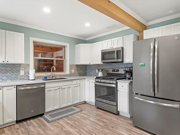This three bedroom, two bathroom home is nestled on a 1.07 acre lot in Shaftsbury, Vermont. The main level welcomes you with an open and sunlit living area, accentuated by the wood-burning stove. Flowing from the living space is an inviting dining area, which connects to the recently updated kitchen. The kitchen boasts stainless steel appliances, Corian countertops, and a generously sized pantry. Adjacent to the kitchen is a first-floor bedroom and a full bathroom. Also on the main level is a versatile space currently serving as a workout area. Upstairs, two spacious bedrooms await, each providing views of the property. The lower level features a recently updated bonus room, laundry, a half bath, an office, and an unfinished entry with potential to be converted into a functional mudroom. Outside, a cedar deck overlooks the backyard. This home blends modern living with country charm and offers easy access to all the amenities the Green Mountain State has to offer.