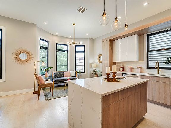 A front porch paradise from the outside, a design-lover's dream on the inside. Two newly renovated homes bring fresh charm and finish to a sought-after, tree-lined street in Weehawken. The downstairs duplex opens to a flowing kitchen, dining and bay window sitting area. Easily move to the two main bedrooms plus baths before spreading out downstairs in the extra living area, office, bonus room, full bath, laundry and storage. Upper unit offers an open concept living and eat-in kitchen, plus 3 bedrooms and 2 baths. Kitchens impress with impeccably chosen modern earth tone finishes, including waterfall quartz counters, natural light wood cabinetry, white and brass trim modern ship lap backsplash, beautiful brass fixtures and timeless stainless appliances. Zen-inspired bathrooms blissfully boast with unique bamboo and stone-inspired tile wainscoting or floor to ceiling marbled tile, plus glass showers and matte black or brass accents. Finish it off with white oak hardwood floors, black trim windows and thoughtfully-chosen custom lighting throughout. Settled into the heart of Weehawken, this neighborhood offers excellent shopping centers, entertainment, and boardwalks with Hudson River and Manhattan skyline. Hop on the Lincoln Tunnel, Lincoln Harbor ferry or the light rail for NYC, Hoboken and Jersey City.
