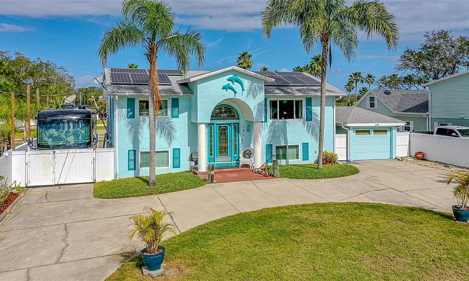 LOCATION LOCATION! A WATERFRONT OASIS THAT FEELS LIKE A RESORT AND MARINA... THIS LARGE TROPICAL LOT IS ALMOST ON THE INTRACOASTAL AND HAS TWO BOAT RAMPS AND PARKING FOR SEVERAL BOATS. THE BEAUTIFUL PAVER DECK WITH POOL AND SPA OVERLOOKS THE WATERFRONT WITH VEWIS OF BOATS PASSING BY ON THE INTRACOASTAL. THE LARGE SPLIT-LEVEL HOME IS NICELY APPOINTED WITH A GREAT FLOOR PLAN FOR WATERFRONT LIVING. THREE BEDROOMS ON THE GROUND FLOOR WITH A FAMILY ROOM THAT COULD ALSO BE USED AS A 5TH BEDROOM, A CONVENIENT WALKOUT TO THE TROPICAL BACKYARD, POOL, AND SPA WITH WATERVIEWS MAKES THIS ALMOST A SEPARATE LIVING AREA FOR RELATIVES, TEENAGERS OR JUST FRIENDS AND FAMILY. THE LAUNDRY ROOM IS LOCATED ON THE GROUND FLOOR AND HAS PLENTY OF ROOM FOR FOLDING CLOTHES & STORAGE. THE GROUND FLOOR BATH HAS AN ADDITIONAL DRESSING AND MAKEUP COUNTER. THE SPACIOUS AND ELEGANT MASTER IS LOCATED ON THE UPPER LEVEL. FRENCH DOORS LEAD TO THE VERANDA WITH PICTURESQUE VIEWS OF THE RIVER. THE UPPER-LEVEL BATH IS OVERSIZED AND HAS ACCESS DOORS TO THE MASTER OR THE LIVING ROOM. THE LIVING ROOM ON THE UPPER-LEVEL OPENS TO THE FULLY REMODELED EAT-IN KITCHEN WITH CENTER ISLAND AND QUARTZ COUNTER TOPS. LOTS OF CABINETS WITH PLENTY OF STORAGE. AN AMAZING PLACE TO PLAN AND PREPARE MEALS. A SECOND SET OF FRENCH DOORS OPEN TO THE HUGE SCREENED IN VERANDA WITH PLENTY OF ROOM TO GATHER AND ENJOY THE VIEWS OF THE WATER AND WILDLIFE. THE CIRCULAR DRIVEWAY AND PAVING TO THE BOAT RAMP MAKE FOR EASY PARKING OR GETTING YOUR BOAT OR WATER TOYS INTO THE RIVER. THE DEEP GARAGE 48 X 12 WILL ACCOMMODATE 2 CARS OR SEVERAL MOTORCYCLES. A ROOF OVER BREEZEWAY BETWEEN THE HOME AND THE GARAGE IS PERFECT FOR STORING BICYCLES OR ANYTHING YOU WANT TO KEEP OUT OF THE RAIN. RECENTLY INSTALLED HIGH IMPACT WIND RATED WINDOWS. ROOF IS ONLY 4 YEARS OLD AND POWER BILLS ARE OFFSET WITH ELECTRIC SOLAR. ONLY MINUTES TO BEACH, SHOPPING, DINING. CLOSE TO EXECUTIVE AIRPORTS, FAMOUS DAYTONA BEACH AND SPACECOAST. 45 MINUTES TO ORLANDO. ;Water: City