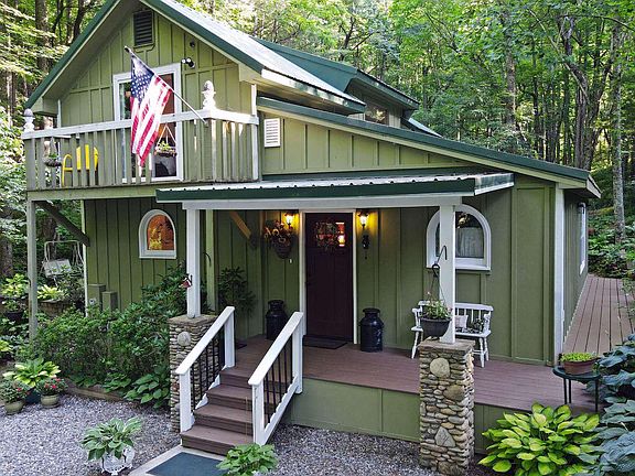 Live in paradise! This beautiful very private 2bed/2bath cabin with almost three acres bordering the national forest offers many amenities. Enjoy outdoor entertaining with the large deck for barbecues with family and friends overlooking your own pond stocked with rainbow trout. Well maintained home offers main level living with upper level for office and two bedrooms. Use the wood burning stove in the outdoor sauna to relax after a full day of all the activities possible in the north Georgia mountains. Nearby are local state and national parks like Vogel, Lake Winfield Scott, and many others, as well as many hiking trails directly off the property into the national forest, or fly fishing streams in the area. Surrounded by nature but close to everything you need, 30 minutes to Blairsville or Dahlonega and a hour and a half from Atlanta. Are you a pilot looking for a convenient and relaxing mountain retreat? Kennedy Creek Resort is a fly in resort just a short drive away. A barn and an insulated 2 bed bunk house gives you all the extra space you need for all your visitors, hobbies or storage needs. This attractive property is furnished and equipped with all your basic needs for your forever home, rental or weekend getaway. Come see Hidden Pond!
