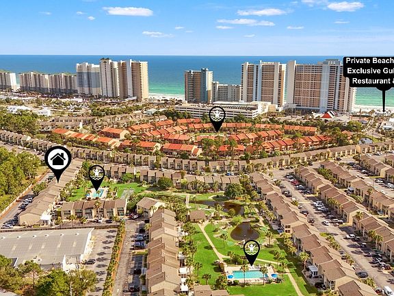 Welcome to ''Surf Shack'' townhome only a short walk away from beach access. This funky surf-themed home is tucked away in the private community of Gulf Highlands Beach Resort. Located in the center of Panama City Beach with short walk to beach access! This townhome features custom finishes throughout and comes completely furnished! Great location with a swimming pool in the backyard. This popular community boasts 11 swimming pools (5 are heated seasonally), 18 hole mini-golf course, tennis courts, shuffleboard, onsite dining, a fitness room, and a clubhouse with stunning beach views. Two assigned parking in front of the unit. LOW HOA includes: 11 pools(5 heated) shuffleboards, beach house/café,
