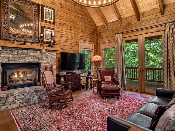 Nestled in the prestigious Knolls of Cedar Creek community, this dream log home is a breathtaking retreat just minutes away from stunning Lake Glenville and not far from the crossroads of Cashiers. This authentic log cabin boasts one of the largest lots in the area. The builder's masterful design aims to create an enchanting space for you to entertain and revel in the company of family and friends. The main level opens to reveal an expansive living room with vaulted ceilings and a cozy fireplace for those chilly nights. An updated kitchen is both stylish and functional--open and spacious for entertaining. The first of 3 generously sized ensuite bedrooms is located on the main floor for ease and convenience. The main floor also offers a versatile bonus room, perfect for an office or space for overnight guests, as well as a separate sitting room/den or multipurpose room. As you ascend upstairs to the loft, the serene and well-appointed primary bedroom is a sanctuary for ultimate relaxation—complete with lavish ensuite bathroom. Upgraded designer light fixtures are found in the primary bedroom as well as throughout the home adding to the rustic, yet luxurious dcor of the cabin. Venture down to the lower level and discover another gem—the third ensuite bedroom nestled alongside a generous separate storage/laundry room. Both the main level and lower levels of the cabin feature full-length porches optimizing outdoor space and views of the rolling acreage. Situated on just under 1.50 acres of gently rolling terrain, this home has a significant amount of usable yard space and a relaxing fire pit near the home's entrance—making outdoor entertaining convenient as well! Whether you seek a permanent sanctuary in the mountains or an investment opportunity as a short-term rental property, this home rises to the occasion and checks all boxes!