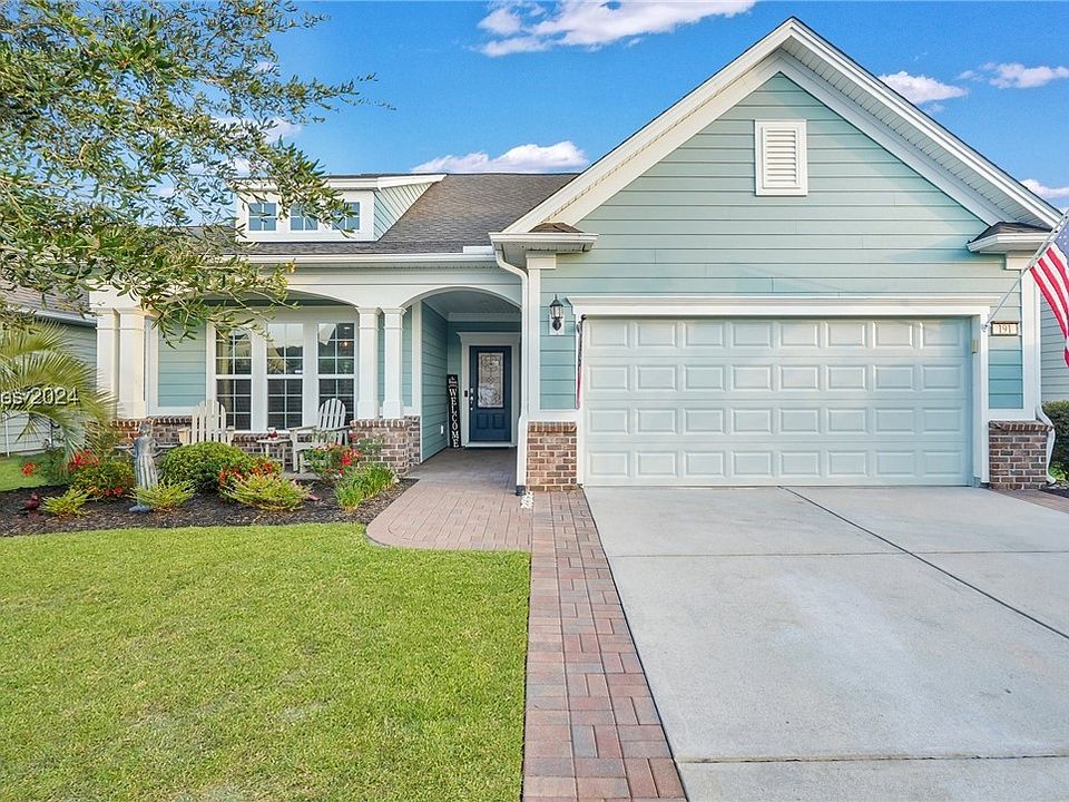 Located in the desirable Sun City Hilton Head community, this exceptional 3BD/3BA Kendall Park home w/loft. The gourmet kitchen features a gas range, ss appliances, large kitchen island w/granite countertop & staggered cabinets w/under-cabinet lighting. Additional upgrades include wood floors, gas fireplace, cozy Carolina room, crown molding & tray ceiling in primary BDR. The peaceful outdoor living space includes a custom four-seasons room w/tile flooring, a back patio w/pergola & pavers, gas outlet for grilling & covered front porch. The extended 2-car garage includes a golf cart bay & walk-up stairs to attic storage for added convenience.