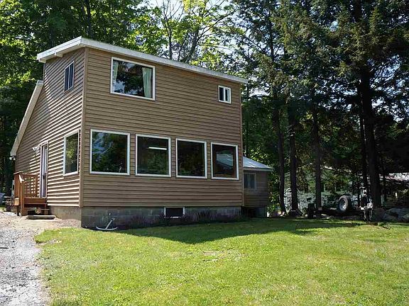This YEAR ROUND HOME can serve as your daily "getaway" from the real world, or could be a fantastic vacation spot...this happy home boasts a 30' permit on the lake directly across the street, with amazing views and deep water for the boat and flat and grassy yard that is "user friendly".The open floor plan is great for entertaining, during boating AND snowmobiling season! Knotty pine walls throughout, kitchen with island and plenty of storage, awesome master suite on the second floor. Come and have a look!