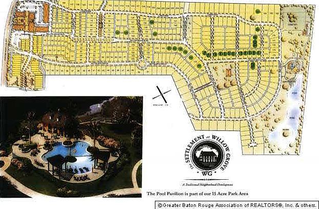 WELCOME TO BATON ROUGE'S FORST TRADITIONAL NEIGHBORHOOD DEVELOPMENT, THE SETTLEMENT AT WILLOW GROVE. WILLOW GROVE HAS BEEN CAREFULLY DESIGNED AROUND THE PRINCIPLES OF NEW URBANISM. HERE THE COMMUNITY BALANCES THE TRADITIONAL NEIGHBORHOOD FEATURES- SUCH AS PARKS, LANDSCAPED GARDENS, WALKING PATHS, AND COMMUNITY POOL- WITH THE CONVENIENCES OF MODERN LIFE- NEIGHBORHOOD SHOPS AND SERVICES. EVERYTHING YOU NEED WILL BE RIGHT AROUND THE CORNER FROM YOUR HOME. YOU WILL NEVER NEED TO LEAVE WILLOW GROVE, NOR WILL YOU WANT TO. LOT HAS SETBACKS AS FOLLOWS; FRONT 10' REAR 9' LEFT SIDE/ RIGHT SIDE 5'/5'