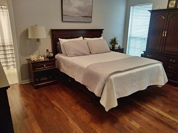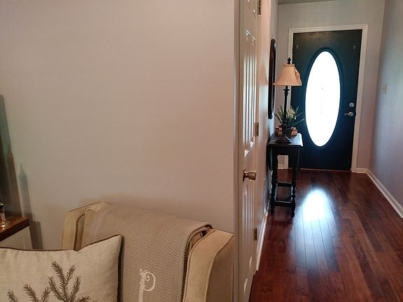 Conveniently located, this 3 bedroom, 2 bath home is the perfect starter home! Great big front porch to enjoy nature at its best! Welcoming foyer, hall closet, and hardwood flooring throughout the home with tiled flooring in the bathrooms. The great room features a trey ceiling, cozy fireplace, and easy access to the back covered deck. The kitchen is very spacious, solid oak cabinets, plenty of counter space, and the refrigerator will remain. There is also a breakfast bar and a breakfast dining nook. The laundry room also gives you access to the backyard and has enough room for a freezer or other storage space and there are more oak cabinets. The master bedroom features a trey ceiling and large bathroom with double vanity, garden tub/shower combo, and a large walk-in closet. Down the hall is a linen cabinet and the other 2 bedrooms and guest bath. There is a full privacy fence with a wide gate to get into the back yard, detached storage, extra parking, and a quiet surrounding.