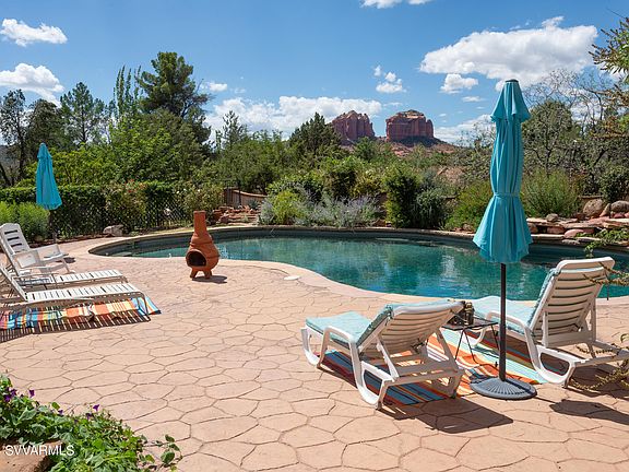 Stunning Red Rock Views of Chapel of the Holy Cross, Cathedral Rock & Twin Sisters! Amazing Courtyard with Biodynamic Koi Pond & Waterfall Welcome You to this Serene, Private 3 b /3 b home. An Entertainers Dream, Large Deck Leading to the Inviting Pool, Enjoy AM Coffee or an Evening Cocktail while Watching the SunSet Over the Red Rocks! More than 300 Varieties of Flowers & Mature Trees throughout the 0.56 Acre Property Providing Privacy and Tranquility. Large Kitchen with Island, & Writing Desk. Master has Walk-in Closet, along with a Meditation/Exercise Area. Lot's of Storage. 2 Beautiful Fireplaces. One Wing of the Home has been Used as an Air B&B, The Chapel View Suite has 5 Star Raving Reviews! Close to Hiking and Biking Trails & Minutes Away from Restaurants & Galleries.