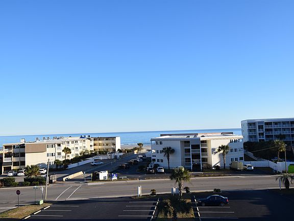 Are you looking for phenomenal ocean views with low HOA fees? You have found it! This unit comes beautifully updated and furnished, ready for you to begin enjoying the Salt Life! Enjoy watching the waves rolling onto the surf from your bedroom window, den sofa or covered balcony accessible from bedroom and den! With a large pool, huge parking and picnic area, there is room for all your family and friends! 2 large bedrooms with a sleeper sofa provides comfort for all. Beautiful ceiling fans throughout, crown molding, laminate wood flooring, tiled shower and updated soft close/dove-tailed cabinetry are a few luxuries to enjoy. Laundry located across the hall. This unit is a desirable second home or investment property! Call today or see the walk through video online and make this your oasis in paradise today!