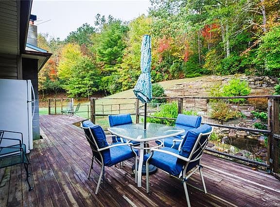 Wrap yourself in ultimate privacy at this mountain retreat on 2.06 acres located only 15 minutes to downtown Brevard. You will enjoy the large inviting covered front porch invites you to relax and take in the sounds of nature including the sound and beauty of you own private backyard waterfall. The spacious living room opens to expansive wood deck perfect for entertaining with gorgeous views of tiered garden/waterfall. The oversized kitchen is a cook's dream with extra-large center island with room for eat-in dining and extra cabinet storage. Adjoining laundry room features attached mudroom with yet even more storage. Light-filled sunroom offers access to second large fenced in yard with storage shed loaded with personality and charm. Large master bedroom features French doors that open to private deck for relaxing and a hot tub room off master bath offers perfect private spa retreat. A bonus room being used a 3rd bedroom & a sunroom makes this home very spacious and cozy!