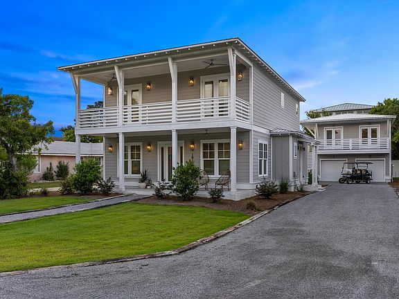 Open 2/4, 12-2pm! Gorgeous custom beach home with great proximity to all things 30A has to offer....restaurants, shopping, and the beach! Nearest beach access is a short 3 block jaunt from this home. Large lot offers a private heated pool, lots of parking, 2 car garage with carriage house above. Multiple balconies in this home to enjoy the scenery and listen to the live music at Local Catch! Main house features 4 bedrooms, 4.5 baths, plus a flex space that could be another bedroom or home office. Gourmet kitchen, first floor laundry, built in cubbies. Heading upstairs the hand railing was custom made and is beautifully accented with stair step lighting! Wine and coffee bar, hidden doggie home and storage under the stairs....this home was well thought out! Make paradise YOURS today!