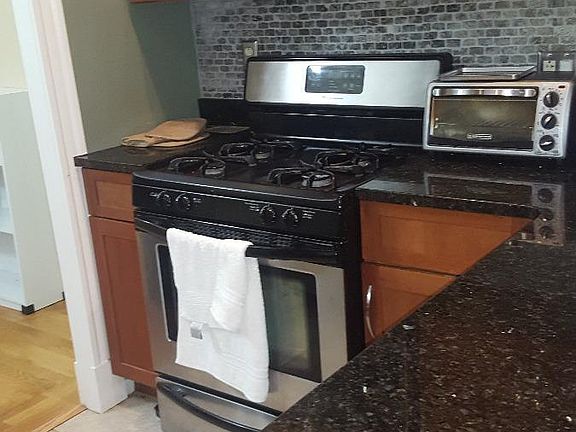 Available August 1st for rent! Renovated 2 Bedroom 1 bath apartment located 2 blocks from Maverick Square in the Jeffries Point neighborhood of East Boston. This 800 sqft 1st floor unit includes 2 good sized spacious bedrooms with closet space on opposite sides of the apartment, new tiled bathroom, cozy modern kitchen layout with newer black counter top, stainless steel appliances, open living/dining room, central AC/heat, high ceilings, shared back porch, coin-op laundry in basement, great outdoor patio space for a grill area. Additional garage parking spaces can be rented for $200/month.