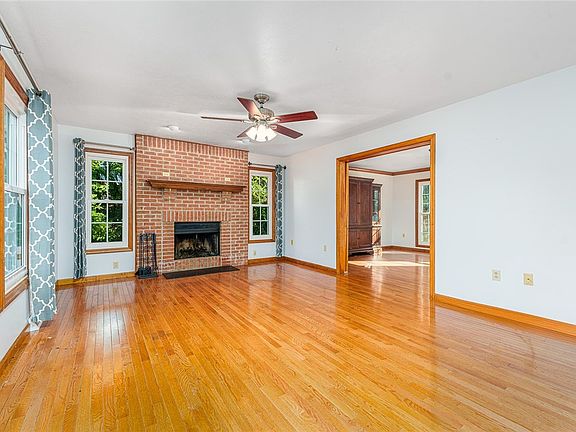 This spacious home offers a bright, open floor plan with hardwood floors. The large kitchen features Granite countertops. The inviting family room includes a cozy brick fireplace and large pocket doors that open to a formal living room. The finished basement offers a game room with patio doors to the back yard, which includes an above-ground pool and swing set. The back deck is perfect for outdoor enjoyment. Updates include newer windows, a new marble vanity in the bathrooms, fresh paint throughout, custom closets, and professional storage in the garage. The home also has a new water heater and new A/C. Built to last with interior and exterior French drains, this home is set on a picturesque lot with mature trees. Located just 2 miles from Route 79 and the PA Turnpike, in Pine Township near Wexford, this home offers comfort, style, and convenience.