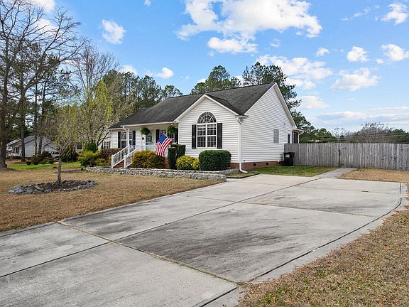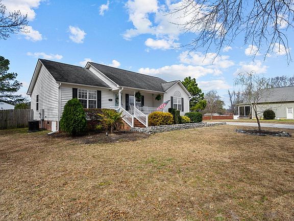 Nestled on a generous .72 acre lot, this 3-bedroom, 2-bathroom ranch-style residence is a perfect blend of comfort and convenience. As you approach, a stone mailbox and walkway guide you to the inviting front porch. Step inside into the spacious living room, seamlessly connected to the open floor plan that welcomes the natural light. Living room and master bedroom showcase impressive vaulted ceilings. The master bedroom features a walk-in closet with plenty of storage and a luxurious master bath including a soak bathtub, separate walk-in shower, dual vanities and linen closet. Move into the kitchen, complete with granite countertops, modern appliances, tall pantry, and a charming dining nook. Walk in laundry room off the kitchen holds ample shelving for extra storage. From here, step out onto the screened back porch and discover your own private oasis, perfect for enjoying the serene views of the spacious fenced-in backyard. Marvel at the landscape, while enjoying the benefits of the large utility shed, fully powered and equipped to house your tools and toys with the double door opening and ramp for your convenience. A firepit and a small garden box add the finishing touches, creating a perfect outdoor haven. Ample parking available on a concrete driveway accommodating 4+ cars. The location strikes balance between peaceful country living and the excitement of an up-and-coming area with restaurants and entertainment options just a stone's throw away, while convenient access to I-40, US 70 and the new 540 expansion only a few miles away. Centralized to Raleigh, Fuquay-Varina, Holly Springs, Garner, Clayton, and Lillington, all within a 20-mile radius, this home offers not just a dwelling but a lifestyle.