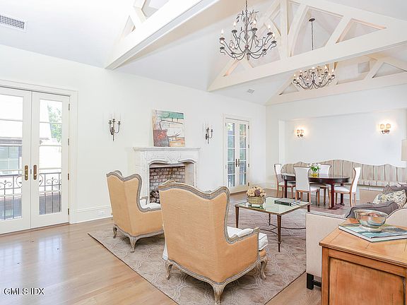 Luxurious easy living in a private gated lane near Greenwich Ave.A special 4 beds/4.2 baths high end condo w indoor/outdoor grand entertaining capabilities,high ceilings that give a feeling of grandeur.Celebrate life w family and friends in the great room/living room w/fireplace and cathedral ceiling,or entertain alfresco thru the French doors to the large terrace w fireplace.Main floor includes a gourmet kitchen, adjacent family rm w/fireplace, sumptuous master suite w/fireplace and walk in closet, plus spacious balcony w sunset views,+ second ensuite bedroom, formal powder room.The artistically attractive stairways or elevator bring you to the 2nd fl oor to access the office/bedrm w built-ins or two additional ensuite bedrooms, both with balconies, and furnished lower level w half bath.