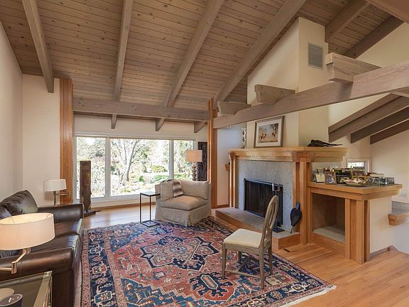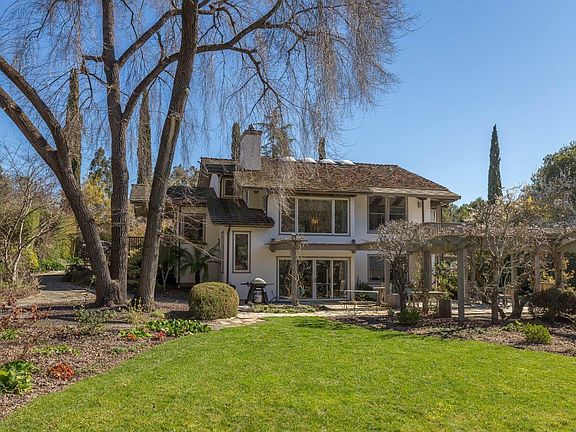 Premier central Woodside location just blocks to Woodside Elementary (K-8) and the Village. Almost one acre with western hill views and extra-deep rear grounds. Well-appointed interiors with hardwood floors, vaulted beamed and paneled ceilings, and abundant natural light. Spacious living room with fireplace and floor-to-ceiling garden-view windows, formal dining room with coffered ceiling, remodeled kitchen, large loft, lower level family room, and customized office plus 4 bedrooms and 3 baths - 2 bedrooms including the master are on the main floor. Gated entrance in a garden setting. The extra-deep rear yard includes an arbor-covered patio, walkways, espaliered apples, open meadow and mature foliage. Ready to move in or excellent opportunity to remodel further or even build a new estate. Close to Sand Hill Road venture capital centers, Stanford University, and Highway 280 to Silicon Valley or San Francisco tech centers.