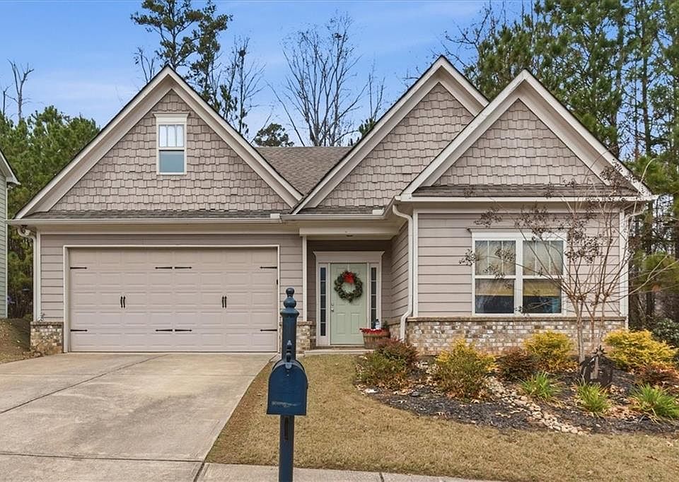 Welcome to 191 Mount Moriah Road where charming Craftsman cottage style meets modern comfort. Nestled in a quiet, beautifully maintained community in the heart of Ball Ground, this thoughtfully designed home offers true ranch style living with the added versatility of a spacious upstairs bonus suite. The exterior showcases established landscaping, shake details, brick trim, and a welcoming covered entry, complemented by a convenient 2-car garage. Step inside to a bright and inviting foyer featuring neutral paint, high ceilings, and warm-toned hardwood floors that flow seamlessly throughout the main level. The open-concept living area includes a spacious family room with a cozy fireplace and views of the tree-lined backyard. The adjacent kitchen boasts white cabinetry, stainless steel appliances, granite countertops, a tile backsplash, ample storage, and a walk-in pantry. A casual dining area connects the kitchen and family room, creating an ideal layout for everyday living and entertaining. This home offers 4 bedrooms and 3 full baths, with 3 bedrooms on the main level, including the generous primary suite. The owner’s retreat features an en suite bath with double vanities, a soaking tub, and a separate shower. Two additional main-level bedrooms share a full bath with a tub/shower combo. Upstairs, a flexible bonus room await, perfect for a home office, media room, playroom, gym, or a true 4th bedroom complete with a walk-in closet and full bath. It’s an ideal setup for a teen suite or private guest quarters. Enjoy an easy to maintain yard and a charming back patio overlooking a peaceful, wooded backdrop perfect for morning coffee or evening relaxation. Located just minutes from Downtown Ball Ground and Downtown Canton, you’ll have convenient access to local shops, dining, and community events. Neighborhood amenities include a playground, yard maintenance, and trash pickup, all included with the HOA. Situated in the highly sought-after Creekview school district, this gem is truly a must-see!
