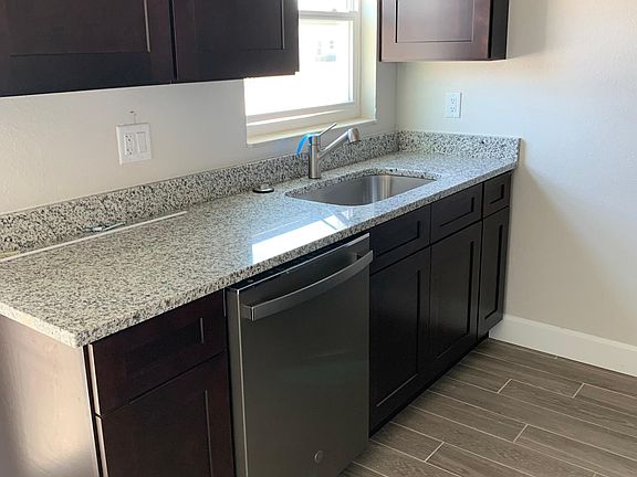 Townhome features porcelain tile wood grain floors, wood grain vinyl flooring upstairs. GE slate appliances, solid wood shaker cabinets with granite countertops. Moen faucets, Levolor wood faux blinds, fans in bedrooms. Washer and dryer, garbage disposal, dishwasher all included. Covered carport. Privacy vinyl fence.