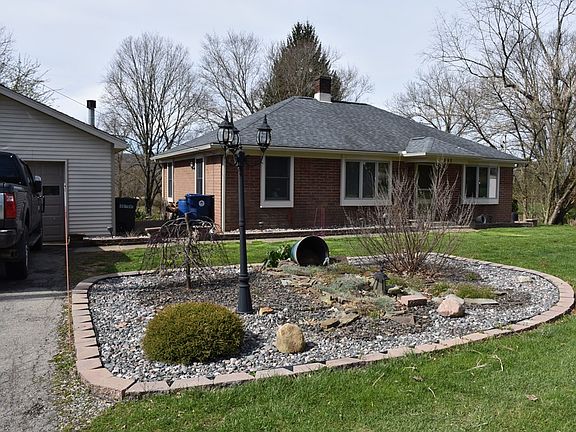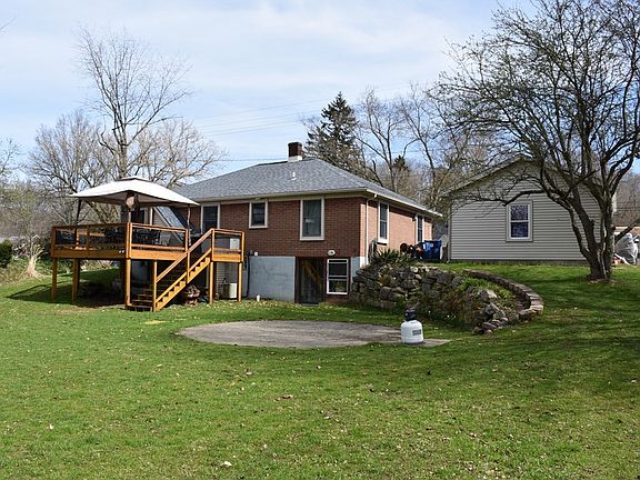 Solid Brick - In town 3 BR, 2 Bath Ranch with many updates. Close to all amenities. Walk-out lower level with 3/4 bath, unbelievable work area, easily ready to be finished living space. Rear deck 16x20 w/Canopy right off of the updated white kitchen for entertaining. Loaded with Built-ins, storage cabinets, and even a special drawer in the new kitchen for dog & cat food - pull out drawers/shelves in cab. & pantry. New 18' above ground pool, storage unit, and large area rug included.