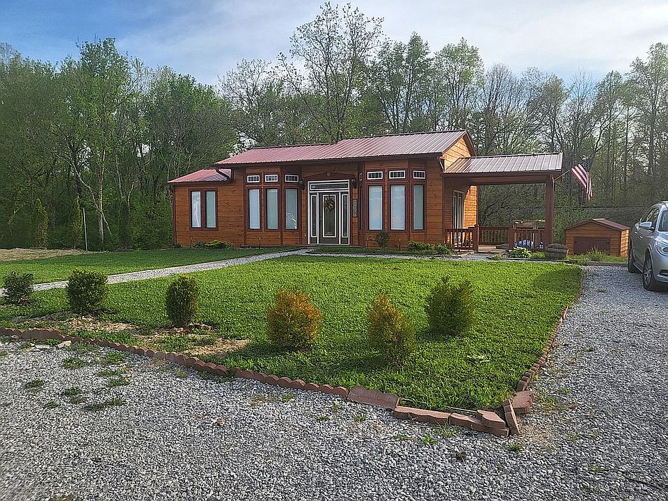 REDUCED $5K....DONT MISS OUT ON THIS PRETTY HOME.....ATTENTION RETIRED COUPLES, EMPTY NESTERS AND SINGLES....Adorable 780 sqft, 1 bedroom, 1 bath home with Cathedral ceiling, hardwood and luxury vinyl plank floors, custom kitchen cabinets and bath, granite countertop, tiled shower with seat in bath, partially furnished with high end furnishing, on a little cul-de-sac on about a 1/3 of an acre samsung washer/dryer,stove, stainless double door frig, microwave, security cameras, garbage disposal.... all tongue and groove interior, laser lighting and chandeliers, sliding barn door in bedroom, beveled leaded glass patio foor and front door, shades built in windows, city water and city sewer, 12x16 covered patio, landscaped and 12x12 shed that matches house, metal roof, close to doctors offices, krogers, restaurants, Cumberland falls, Yahoo falls, Big South Fork train, Natural bridge, Lake Cumberland, and easy access to Tennessee...would make a great Airbnb, retirement or first home (can add on)..everything is New and a MUST SEE