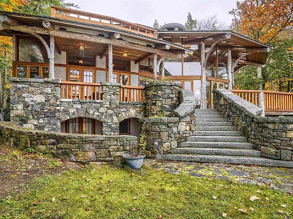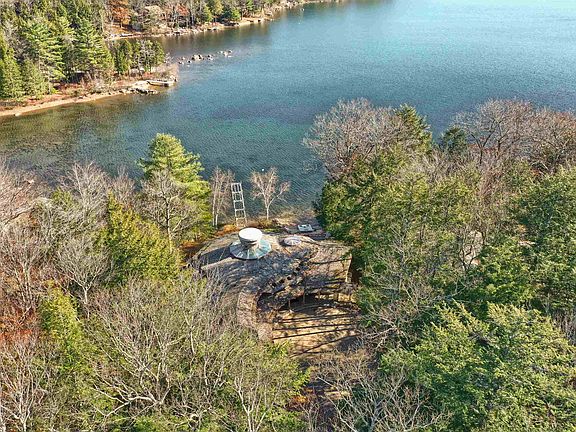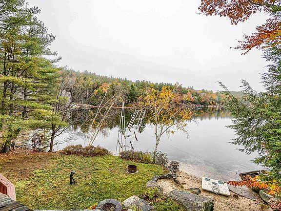 Amazing, unique and simply beautiful only begins to describe this very special, one-of-a kind waterfront home on crystal clear Merrymeeting Lake with 100 feet of mostly level shorefront, a large sandy beach and pretty southeasterly views. But the adventure continues when you enter the Great Room with its majestic three-story fireplace expertly crafted by a master stone mason and the sunshine pouring in through the 20-foot-tall windows. Adjacent to the Great Room is a charming dining area and a chef's kitchen with a large island while down the hall is a cozy primary bedroom suite with a fireplace. And up the gorgeous, hand-crafted stairway is another bedroom suite and a very special room known as the is "Birdhouse" with its own balcony overlooking the Lake...while down the "forest path" is an in-law suite complete with a kitchenette, balcony and a private entrance. The walk out lower level includes another fireplace in the game room as well as two bunk rooms each with their own bath. The home features state of the art electronics, central air, an on-demand generator and a heated two car garage. The almost one-acre property abuts 86 acres of conservation land. Showings begin Saturday, November 5, 2022
