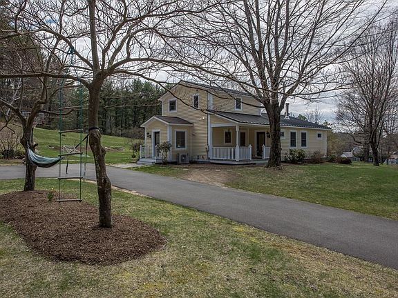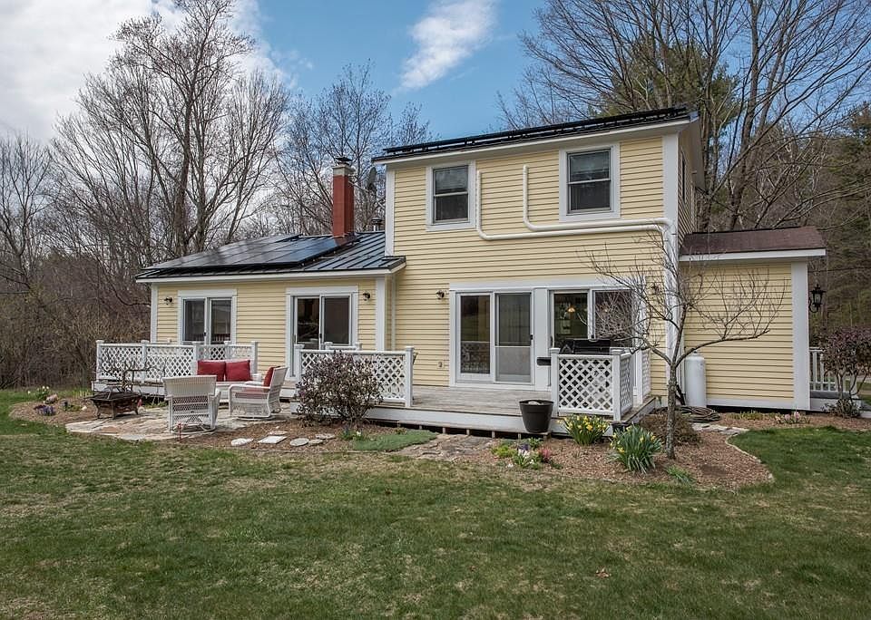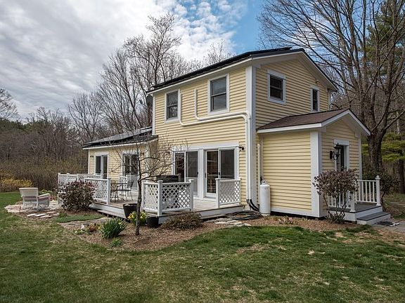 Truly a rare find in today's market. Beautiful setting on almost 2 acres of land, 10 mins to Amherst center and UMass. Land, large red barn, abutting trails, spacious flower and vegetable gardens, fruit trees, front porch, deck, and patio perfect for relaxing and entertaining. A lovely usable space inside and out. This renovated 3 bedroom, 2 full bath home is bursting with sunlight and warmth. The main living level includes an open kitchen dining area with granite counters and propane range, wood floors throughout, four sliders to the deck, sitting room, cozy living room with wood stove, and 1st floor master with full bath. Upstairs there are 2 bedrooms and a full bath. Partially finished lower level with den, storage, and utilities. Artesian well and 4 bedroom septic. Updated heating system includes owned solar panels, pellet boiler, heat pump water heater, mini splits. This property has it all - energy efficient and self sufficient. A gem of a property! Don't miss it!