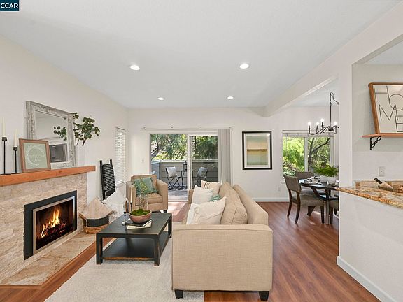 Come and see this charming 2 bed, 1 bath condo in the beautiful Foothills of San Ramon! This lovely home has so many great features which include, newer Ashland Oak luxury wide plank flooring and newer baseboards through out, bright and dimmable recessed lighting, a newer opulent valor fire place, a beautifully updated kitchen with luxury cabinets & granite counter tops, an updated bath, and a bonus vanity & sink in the master bedroom. Sit out on the patio and take in the nature of the hills, or walk on the nearby Iron horse trail to the new City Center! This complex offers 2 pools, 2 spas, a sauna, a clubhouse and the unit has a detached garage and 1 assigned parking spot. Conveniently located near endless shopping, dining, entertainment, top rated schools and easy freeway access. This home is a GEM and won't last long!