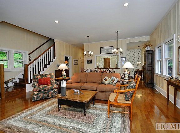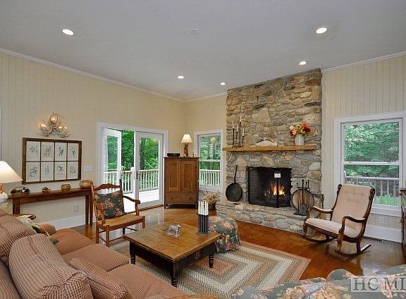 Tucked away on 16 gently rolling acres in the historic neighborhood of Burt Farm, this beautiful, well maintained farmhouse offers plenty of privacy with just a short drive to downtown Cashiers. Architectural details like rich wood floors, painted wood walls, a stone fireplace in the living room and lots of glass for natural light, exude the relaxed mountain lifestyle. A wonderful place to enjoy wine and appetizers as the cool evening approaches, the rear deck overlooks the lushly wooded property and a tranquil pond with the sound of rushing water in the distance. A cozy study and generous master suite with sauna and jetted tub sit on the main level, with three more bedrooms upstairs. Additional features include a two-car garage, workshop, partial generator and wine storage.