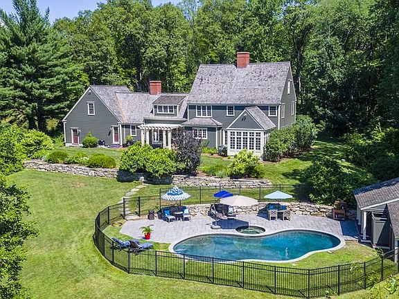 Contemporary colonial situated on a private 4.78 acre lot. Perfect home for buyer looking for quality workmanship, privacy & views. Open floor plan for today's living. From garage you enter a mudroom w/built-ins, tiled floors and access to powder room & office space. Family Room has fireplace and charming raised paneling. Kitchen w/6 burner Viking stove, Ashfield Stone counters & top of the line appliances. Dining room has wainscoting & crown molding. Lovely foyer for greeting guests. Formal living room has fireplace, built-ins and opens onto sun room w/brick floor. First floor bedroom and 3/4 tiled bath a bonus. Master suite has fireplace, walk-in closet, window seats & built-ins dressers. Master Bath with tiled shower, double sinks & Jacuzzi tub. Second floor has 3 additional bedrooms, a Jack & Jill bath & Laundry Room. Two staircases - one to Bonus Room which connects to Master. Beautifully landscaped grounds with in-ground pool, patio, fire pit & more. Book a Viewing!