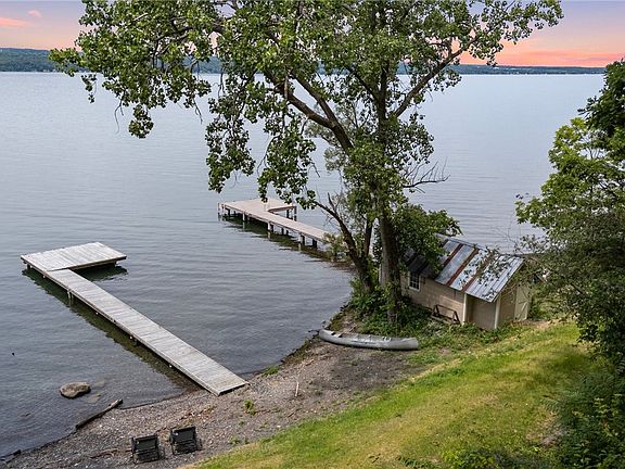 Charming lake cottage nestled in an idyllic setting, this enchanting cottage offers the perfect blend of tranquility & natural beauty. Sitting above the water surrounded by lush, protected land (Bell Station Preserve), the cottage offers breathtaking views & unparalleled privacy. This newer build boasts a bright, open layout with an abundance of natural light. Offering two inviting bedrooms, a delightful 4-season sleeping porch which offers a cozy space for additional guests or serene afternoon naps. The kitchen is designed for both functionality & style, opens into the living room. Step outside to the large deck, ideal for dining al fresco & taking in the stunning views. Gradual steps lead to 83ft of lake frontage, a walkout shale beach & dock, to enjoy water activities. This fully furnished, turnkey year-round cottage commutes easily to Ithaca, Auburn or Cortland, & all the Finger Lakes has to offer including wineries, dining & hiking. Embrace the perfect blend of modern comfort & natural beauty in this exceptional lake cottage providing a picturesque end to each day. Your ideal lakeside lifestyle awaits! Offers Reviewed 7/15. Potential to purchase adjacent property 189.
