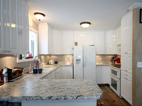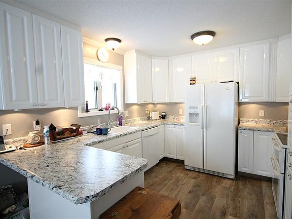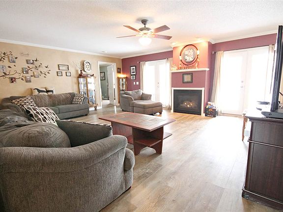 Custom built home with many custom and maintanance free features. Outside has maintanance free siding and windows with 5 zone sprinker system. Patio has access from 3 French doors in home. Gas log fireplace