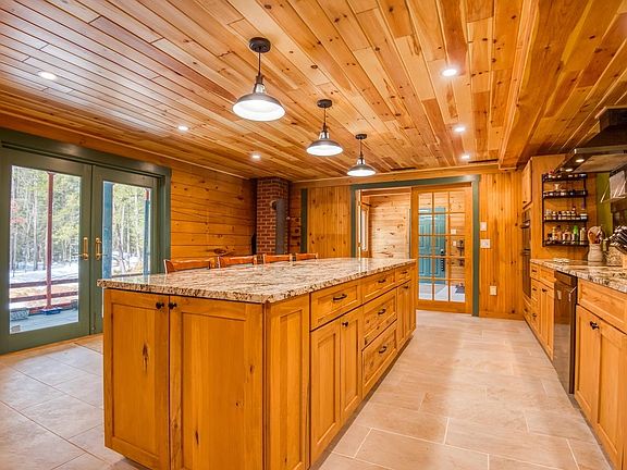 SET ON OVER 11 WOODED ACRES, THIS CONTEMPORARY LOG HOME is warm, inviting, and full of character. The kitchen is well-equipped with ample cabinetry, granite countertops, and stainless appliances. An eat-in island provides a casual gathering spot, while a wood stove on a hearth adds warmth and character. The adjoining screened porch extends the living space, perfect for enjoying the outdoors in comfort. With nearly 2,400 sq. ft. of living space, the home showcases natural wood tones and exposed beams throughout. The spacious great room, with its cathedral ceiling and southern exposure, is filled with natural light and provides easy access to the front deck. The main level also includes a comfortable bedroom, a three-quarter bath, and a generous mudroom. Upstairs, the primary suite features a full bath and an open loft area that offers flexibility for additional living space. While currently configured as a two-bedroom home, there is the room to create a third bedroom if needed. A full basement includes two partially finished rooms and extensive storage options. The attached two-car garage with direct entry completes the package. Located with easy access to the Saco River, nearby beaches, and trails, this property also includes a beautiful boggy wetland bordering conservation land. Just a short drive to Fryeburg Academy and a bit farther to North Conway, you’ll have the perfect balance of seclusion and access to all the best the Valley has to offer.