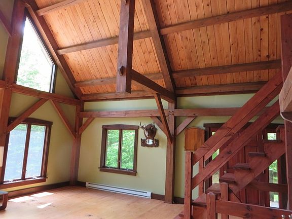 OFF THE BEATEN PATH sits this Cedar sided home on a 10+ mostly wooded lot with a small feed plot. House does offer a stone floor to ceiling fireplace, vaulted ceiling with plenty of windows , loft area with a full bath, 2 decks, one open and one covered, the 28x21 living room with dinning area, custom made cabinets in the kitchen, full walk out basement with washer/dryer area and a wood stove and overhead garage door. Looking for a place to relax and enjoy the outdoors, then look no more.