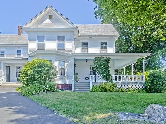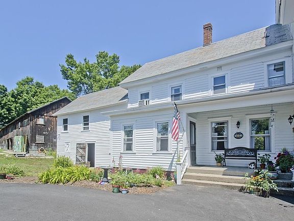 Here's a beautifully maintained, historic farmhouse in North Hatfield that will instantly feel like home! Currently set up as a 2 family, it can easily be converted back to a single family. Many updates throughout the recent past, but the original charm of the house remains. Features include a large wrap around porch offering a panoramic view of open space, double living room, eat-in country kitchen, hardwood floors, original trim and moldings, large pantry and laundry room, 1st floor bedroom and full bath. Ample storage is provided in the attached shed, large barn or separate 2 car garage. Recent updates include all new wiring and CB panels, newer furnaces and water heaters, updated bathrooms, large sliders leading to the deck, rebuilt front porch, repaved driveway and MassSave insulation. For the past 30 years this was the home of "Marion's Art Barn", a summer arts & crafts camp for school children. Watch the attached video and read the attached history! Showings begin Sun, 7/19.