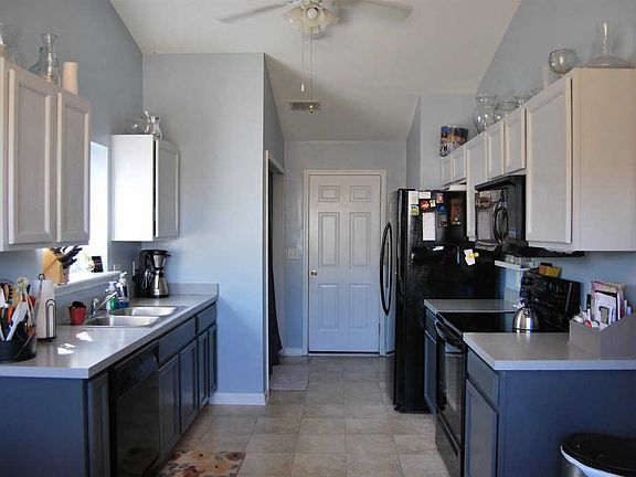 - Kitchen: Eat In, Counter Tops-Solid Surfac, Floors-Laminate, Cabinets-Painted, Ceiling Fan